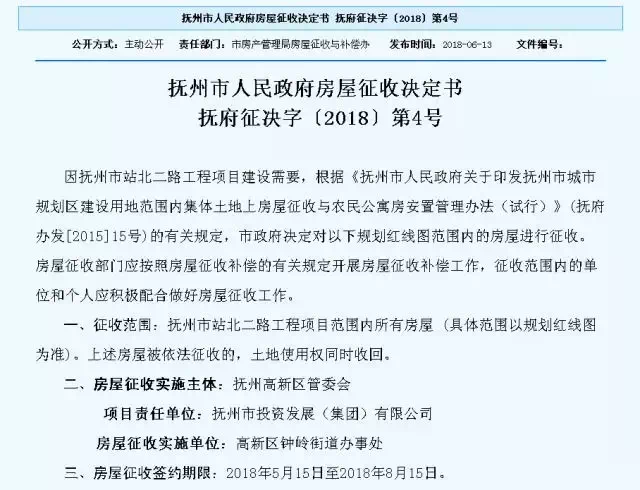 撫州市人民政府公布了一批房屋征收公告