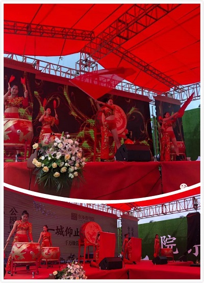 上午九點(diǎn)十八分,一曲氣勢磅礴的“紅袖鼓舞”正式為營銷中心開放拉開帷幕,響徹云霄的鼓舞瞬間點(diǎn)燃了現(xiàn)場的熱烈氛圍。