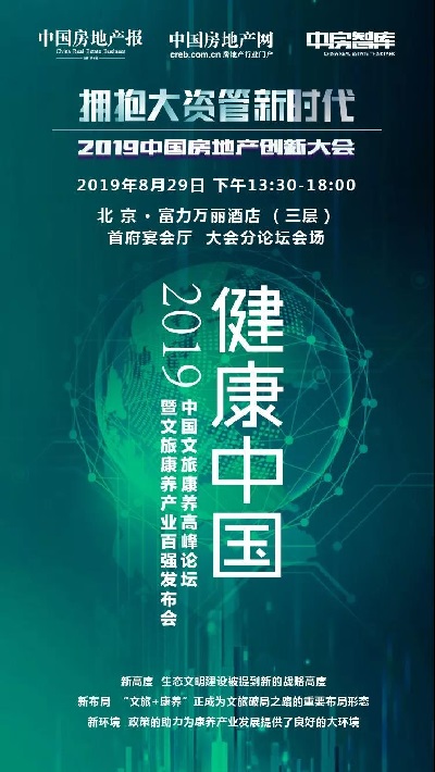 由中國房地產報、中國房地產網、中房智庫主辦的2019中國房地產創(chuàng)新大會將于8月29日在北京富力萬麗酒店舉行,作為大會重要的平行論壇之一,健康中國·2019中國文旅康養(yǎng)高峰論壇暨文旅康養(yǎng)產業(yè)百強發(fā)布會的籌備工作正在緊鑼密鼓地進行。
